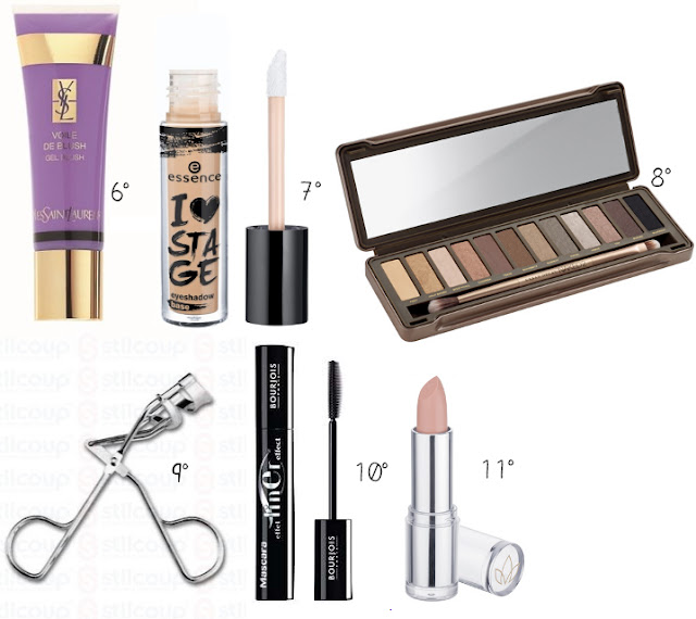 Como blush, uso o novo Voile de Blush da Yves Saint Laurent (review para breve), que tem, na embalagem, um tom arroxeado, o que não se verifica nas maçãs do rosto, mas sim um coradinho súbtil e natural. Passando para a área dos olhos, uso sempre o primer de olhos da essence, que me confere uma barreira contra a oleosidade das pálpebras e funciona também como potencializador de sombras. De seguida, passo para a minha nova paixão, a Naked2 e aplico a cor foxy como base e de seguida a half baked. A seguir, encaracolo as minhas pestanas com o curvex e passo apenas uma camada de rímel. Finalizo o look com um batom (este é da catrice) ou um lipstain. :)